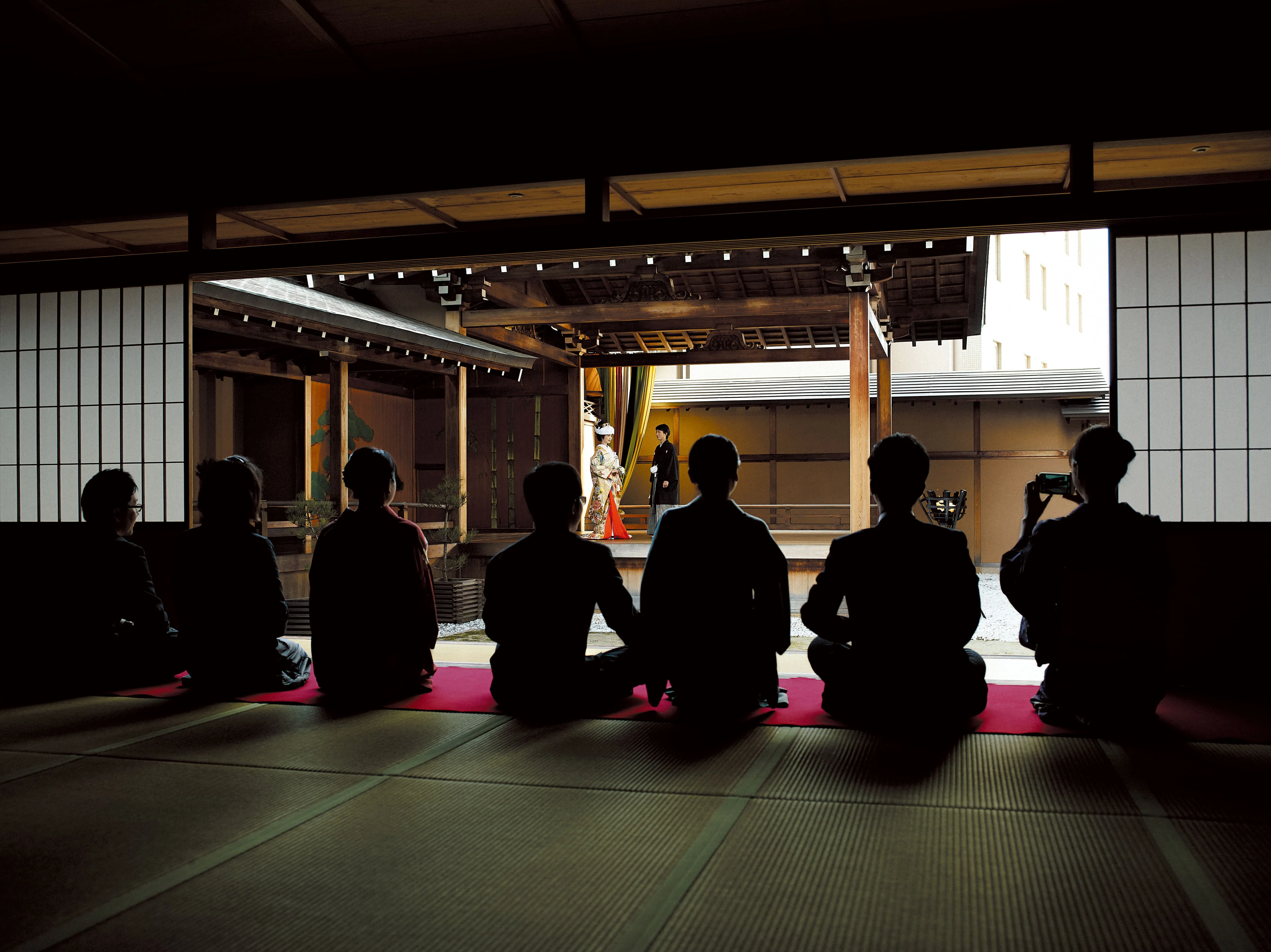 能舞台「千寿殿」での結婚式は、ご参列の皆様も見ていただくことができます